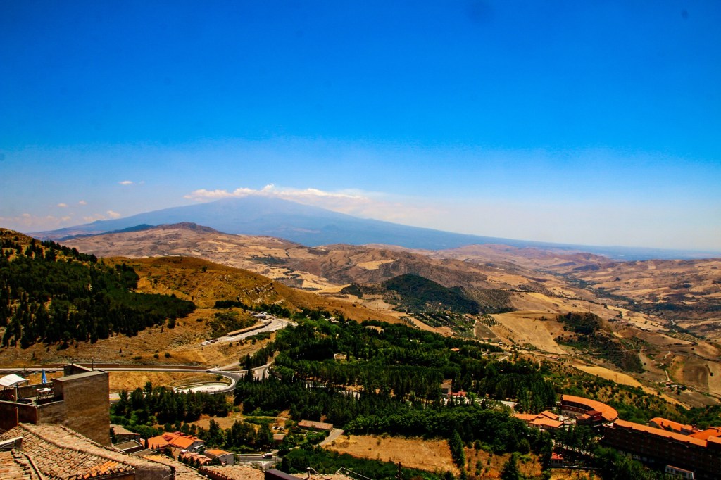 Heute fühlt sich Troina dem Frieden verpflichtet, nicht nur im Gedenken an die Opfer des Zweiten Weltkrieges. Auch eine deutliche Distanzierung gegenüber der Mafia ist über dem Eingangsportal des Rathauses angeschlagen. Tritt man aus dem Municipio hinaus, nimmt der Ätna den Blick gefangen. An seine südliche Flanke schmiegt sich Catania, dahinter funkelt das Meer. Die Piazza wirkt wie ein Balkon, sie wurde wohl erst vor kurzem umgestaltet, ist noch nicht ganz fertig, und bietet einen überwältigenden Panoramablick auf den nimmermüden Vulkan. In diesem Ausnahmejahr habe ich diesen grandiosen Logenplatz ganz für mich alleine.