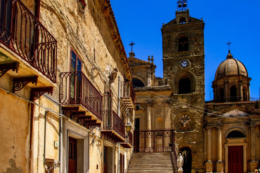 Die Hitze stülpt sich wie eine milchige Glocke über die Stoppelfelder. Der Weizen ist jetzt im Juli längst geerntet. Auf der fruchtbaren Erde breitet sich eine endlose Decke aus, scheinbar gewebt aus golden, braunen, gelben, manchmal schwarzen Fäden und dazwischen bestickt mit grünen Punkten. Das karge Inselinnere Siziliens entfaltet seine brutale Schönheit nie eindrucksvoller als in solchen Hochsommerwochen.