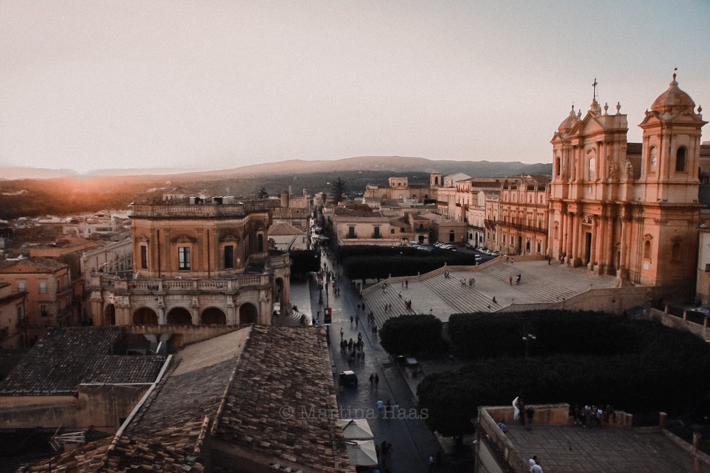 Der Corso Vittorio Emanuele ist keine Straße. Er ist ein Laufsteg. Ein Jahrmarkt der Eitelkeiten. Ein architektonisches Statement. Der Corso in Noto ist langweilig und faszinierend zugleich. Schnurgerade zieht er sich von Ost nach West. Morgens bescheint ihn die aufgehende Sonne, abends hüllt ihn das hinter den Hügeln schwindende Licht in ein goldenes Kleid.