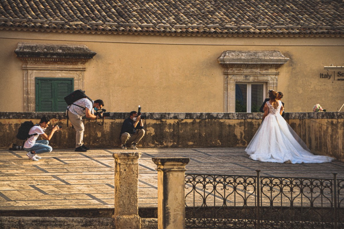 Alessandra und Giovanni wirken angestrengt, als sie aus dem schwarzen Mercedes mit den abgedunkelten Scheiben aussteigen. Der Fahrer hat sie bis vor die Kathedrale chauffiert. Nur mühsam kann sich die Frau aus dem Fonds des Wagen befreien in ihrem weißen Kleid mit der Schleppe. Die beiden haben heute geheiratet. Vor ihnen liegt jetzt die Passegiata. Im Gefolge die Hochzeitsfotografen. Drei sind es, die jeden Schritt, jeden Blick und jede Geste für die Ewigkeit festhalten.