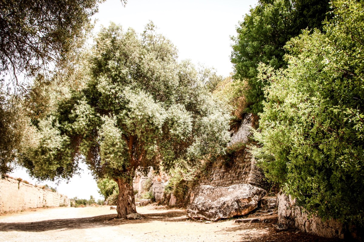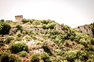 Hinter der nächsten Kehre dann eröffnet sich der Blick auf die noch immer mächtigen Relikte des einstigen Netum oben auf dem Monte Alveria. Die Straße ist hier nurmehr ein enger Weg, wehe es käme Gegenverkehr. Einer müsste rückwärts weichen. Aber es kommt keiner. Was, wenn hier der Wagen streikte? Einfach stehenbleiben würde. An der Flanke des Hügels, auf die die Sonne brennt und wo es keinen Schatten gibt. Nicht daran denken. Einfach weiterfahren.