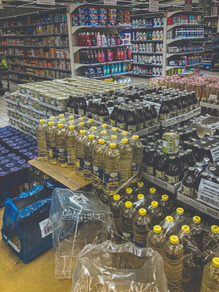 Zum Beispiel im supermercato: Mir war der braune Zucker ausgegangen und ohne braunen Zucker kann ich morgens meinen caffè nicht trinken, weil er dann einfach nicht diese karamellige Note hat. Im kleinen alimentari ein paar Straßen weiter gibt es leider keinen.