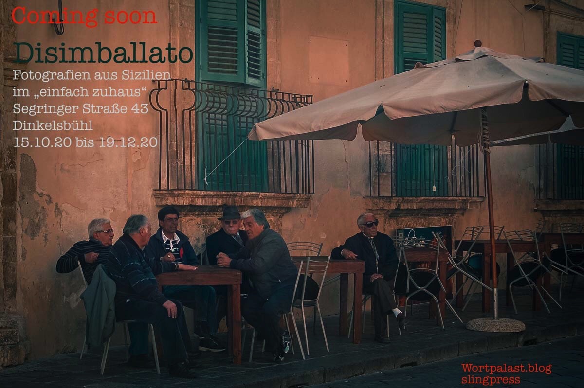 Ab 15. Oktober sind im Dinkelsbühler Unverpacktladen „einfach zuhaus“ in der Segringer Straße 43 einige meiner Fotos aus Sizilien zu sehen. Unter dem Thema „Disimballato“ (unverpackt) zeigen sie die Insel von ihrer vom Meer abgewandten Seite. Ins Hinterland verirren sich kaum Reisende und doch ist dort noch etwas von der „Sicilianità“ zu spüren, die immer mehr verschwindet…
