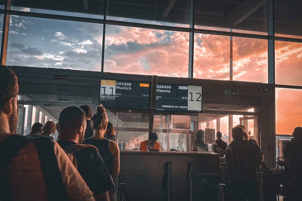 Das pranzo-cena muss ungemütlich im Stehen eingenommen werden, denn Sitzplätze vor den Gates gibt es nur für einen Bruchteil der Passagiere. Und viele davon sind mit Gepäckstücken belegt. Kinder schreien, Eltern schimpfen, Hunde bellen und die Klimaanlage packt die tausenden von Menschen nicht.