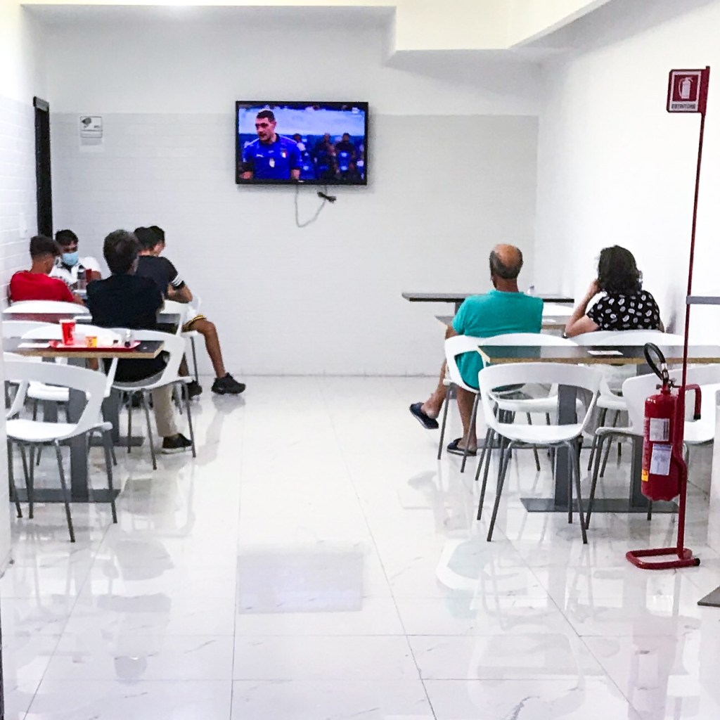 Mini-Public-Viewing in Pandemiezeiten im kühlen Einkaufszentrum