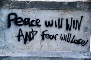 Hier stößt der zwischen den Zeiten Wandelnde auf Kirchen, die lange schon Ruinen sind, in denen im Jetzt aber Gottesdienste gefeiert werden. Auf Häuser, die mit Metallstützen in ihren leeren Fensterhöhlen aufrecht gehalten werden müssen und doch ist gleichzeitig eine Wohnung scheinbar unversehrt. Weiße Bettlaken wehen vor den Balkonen.