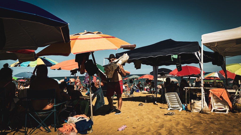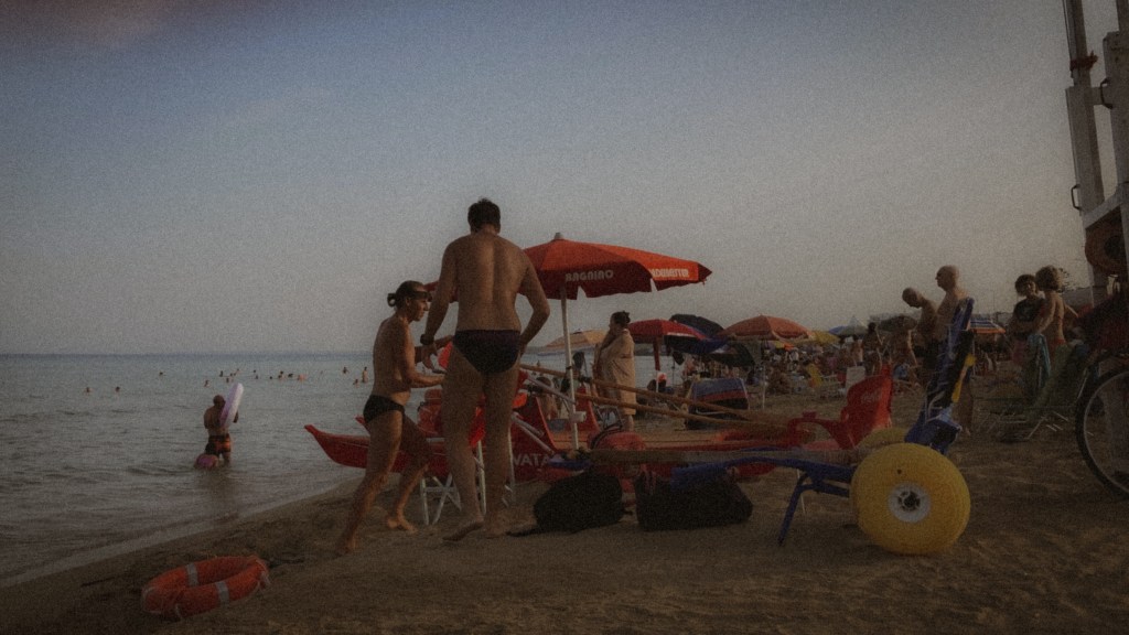 Hier, fast am südlichsten Punkt der Repubblica Italiana, ist die Sonne bei ihrem Höchststand am Mittag brutal. Schmerzhaft auf der Haut. Kaum auszuhalten. Deshalb verdöst man diese taghelle Zeit am besten. Hinter geschlossenen Fensterläden, deren Lamellen das gleißende Licht, das ins Zimmer fällt, zerschneiden. Oder am Strand, zusammengekauert im winzigen Schatten eines Sonnenschirms.