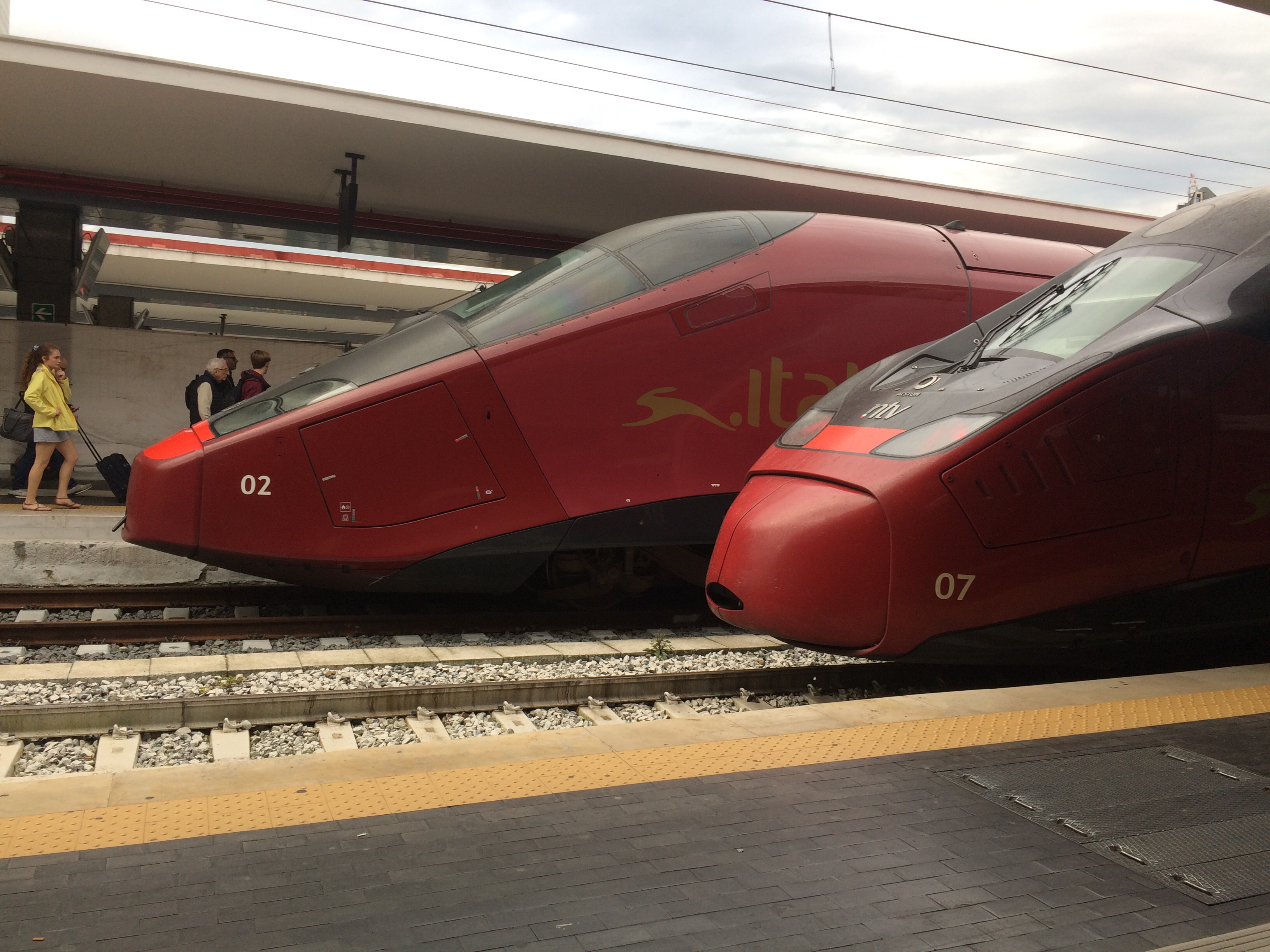 Firenze, irgendein Außenbahnhof. Dann Roma. Hier wechseln sich die Passagiere aus. Als der Italo in Roma Termini weiterfährt, ist er wieder genauso voll.
